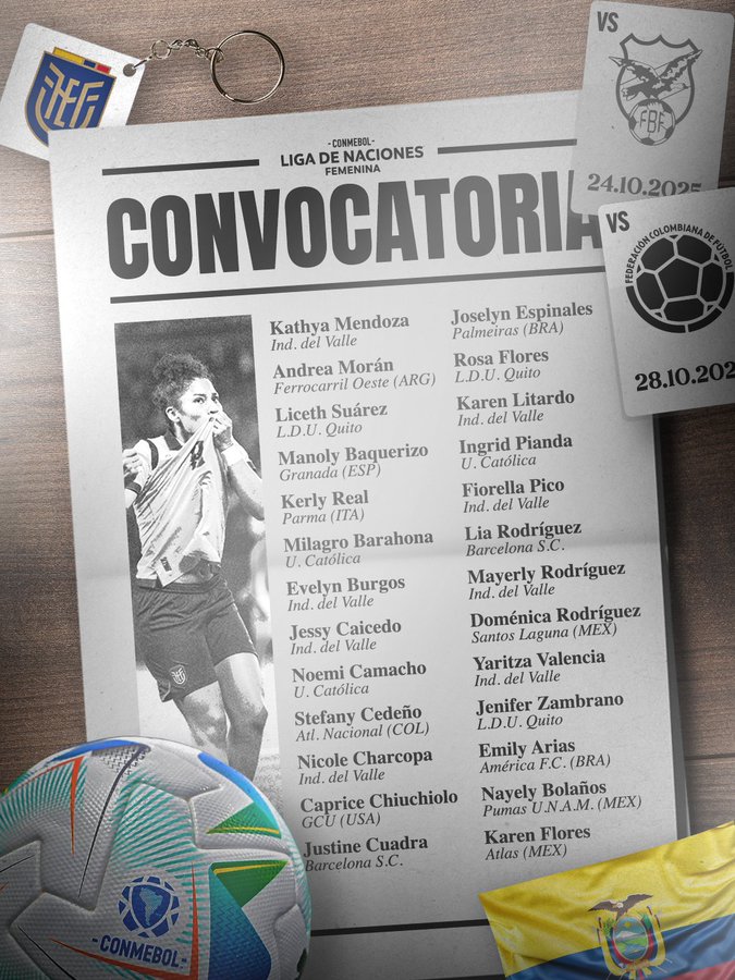 La Federación Ecuatoriana de Fútbol (FEF) hizo pública la convocatoria oficial de la Selección Femenina de Ecuador para la Liga de Naciones Conmebol, un torneo inédito que definirá los cupos sudamericanos al Mundial de Brasil 2027.